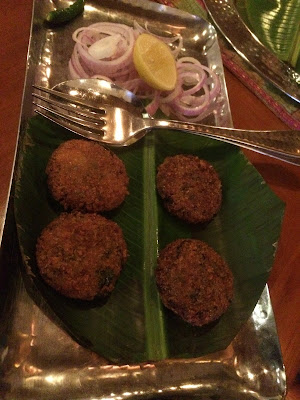 This was followed by the starter, chicken cutlet covered in breadcrumbs. It was good but we had really hoped for more non-veg starters.